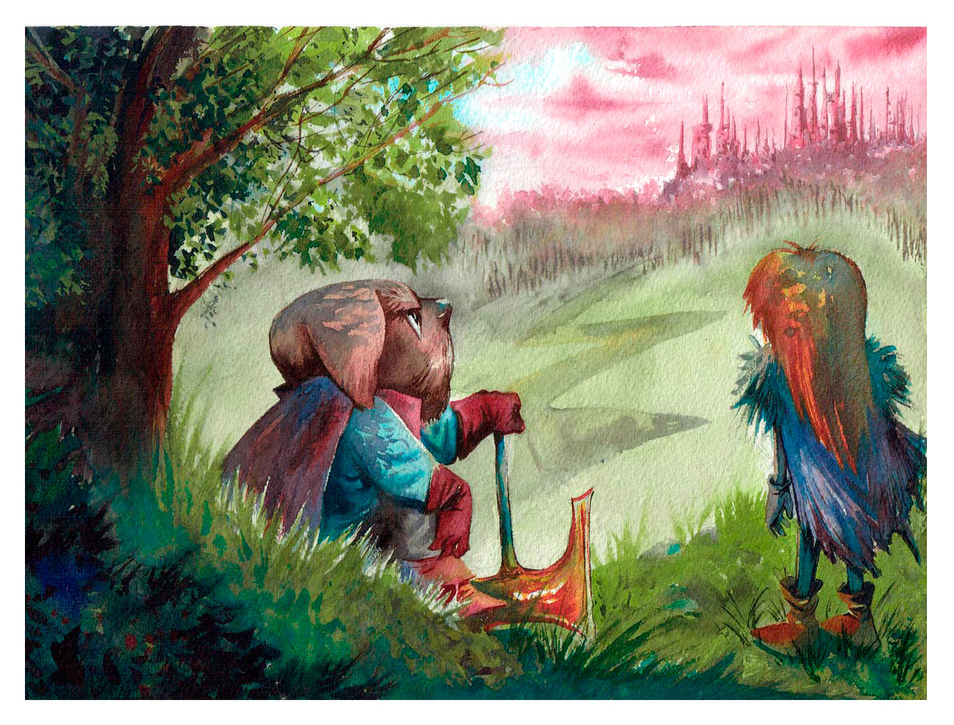 Watercolors with digital painting in Photoshop.